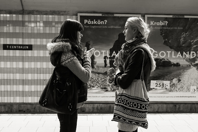 On my way down into the subway system, someone told me to "Kom närmare" (get closer), well with the fixed lens on the X100 it was a problem, but I used what I had.