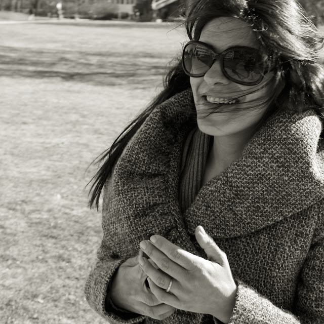You can see the reflection of me in her glasses. I was struggling a bit because I had the camera in auto focus mode. I was walking at the same time as I took the picture, so I had to follow her and let the X100 grab focus. I fired away in the last 10th of a second, and half a second later the shoot would be gone...Pretty fun that my favorite shot of the day was just hanging around 50 meters from the building where I work (you can also see the building in her glasses).