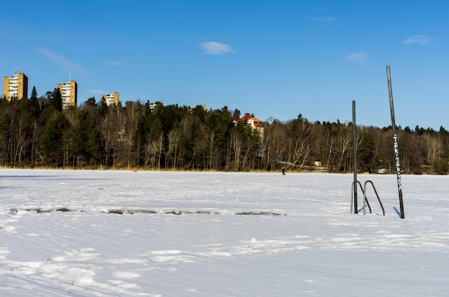 After some warm winter days in late February the winter came back with a cold and sunny March. I didn't get much street time during March but in one or two weeks the spring should be on its way if you can trust the weather forecast. Instead of street time I had some time on the ice. The lake Magelungen here in Farsta strand where I live is still frozen with 20 cm of ice, so there are lots of people still using the lake as a "street". Here are some pictures.