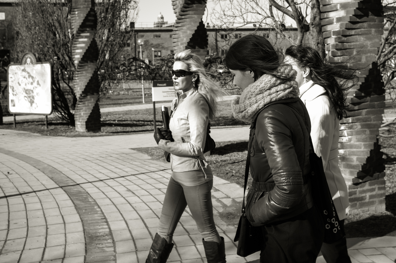 It was a windy day here in Stockholm today and I found these three girls struggling in the wind just before the subway entrance.