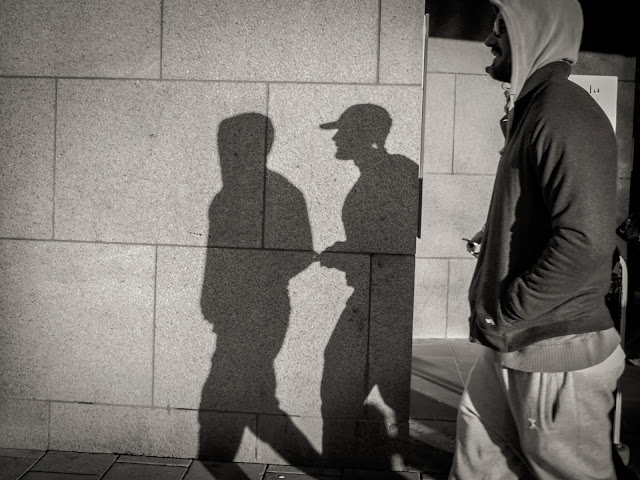 So finally, I had a few minutes to spare on the street, yes minutes, not hours of searching and wandering the streets. I have made two training sweeps so far, yesterday (sunday) my wife and the kids went to Farsta centrum (the shopping center of Farsta, where I live). This day I only had some walk by shootings to try to figure out the camera, settings etc. I was shooting for maybe 5-10 minutes in total and found out that Mr Q is a tricky one to handle. The auto focus is quite slow and so far manual focus is not to think about because there is no viewfinder (I might try focus peaking later on), so I was stuck with pre-focus shooting style, so it was a bit difficult to nail the focus. It is only good shooting light between 10 am to about 2:30 pm (4,5 hours) right now here in Stockholm, so one really have to be efficient on the streets. The golden hour (or golden 30 minutes) sets in around 2 o'clock, and just forget about any light after 3 o'clock. I was out shooting between 1 and 1:30 and the light was still quite hard, and I clearly notice the 1.3 difference in exposure value of dynamic range (Pentax Q vs X100). The Q frequently clipped the whites and the blacks, where my X100 would have managed the light situation.